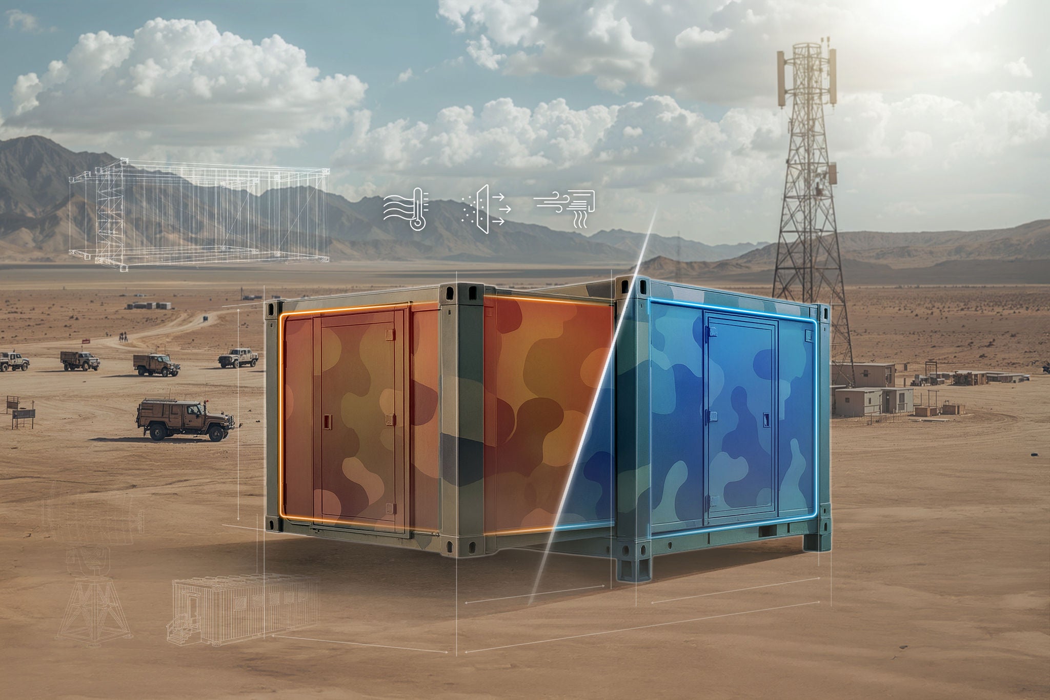 Das Know-how, das wir für mobile Anwendungen in verschiedensten Fahrzeugen aufgebaut haben, kommt heute auch in stationären Umgebungen wie Shelter und Zelten zum Einsatz. Dieses branchenübergreifende Expertise ermöglicht uns, zuverlässige und effiziente Temperaturkontrolle überall dort zu bieten, wo sie benötigt wird - stets im Einklang mit anwendbaren Gesetzen und Vorgaben.